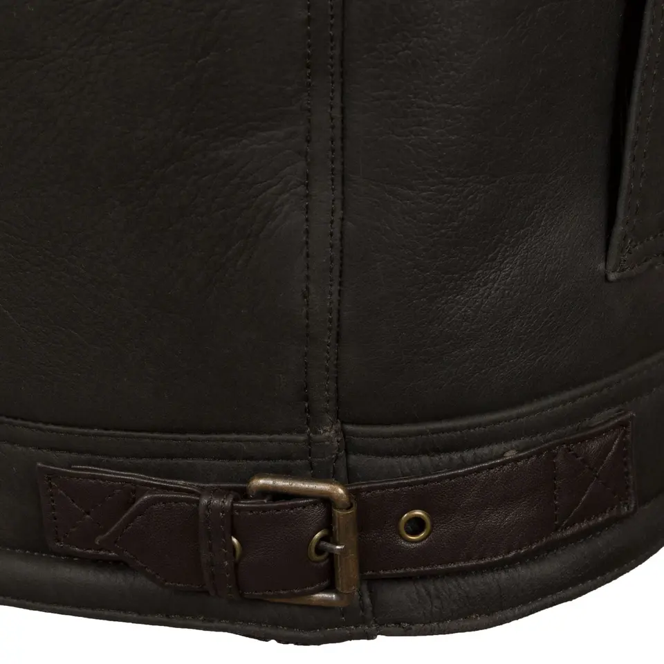 Chaqueta de piloto de piel de oveja marrón óxido para hombre, chaqueta voladora de piel de oveja antigua