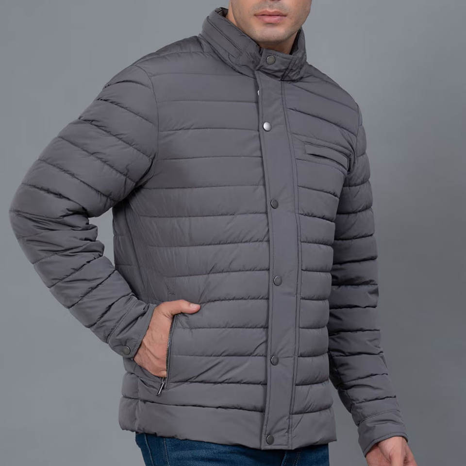 Chaqueta acolchada clásica para hombre para uso diario, chaqueta acolchada de cuello alto con diseño cortavientos.