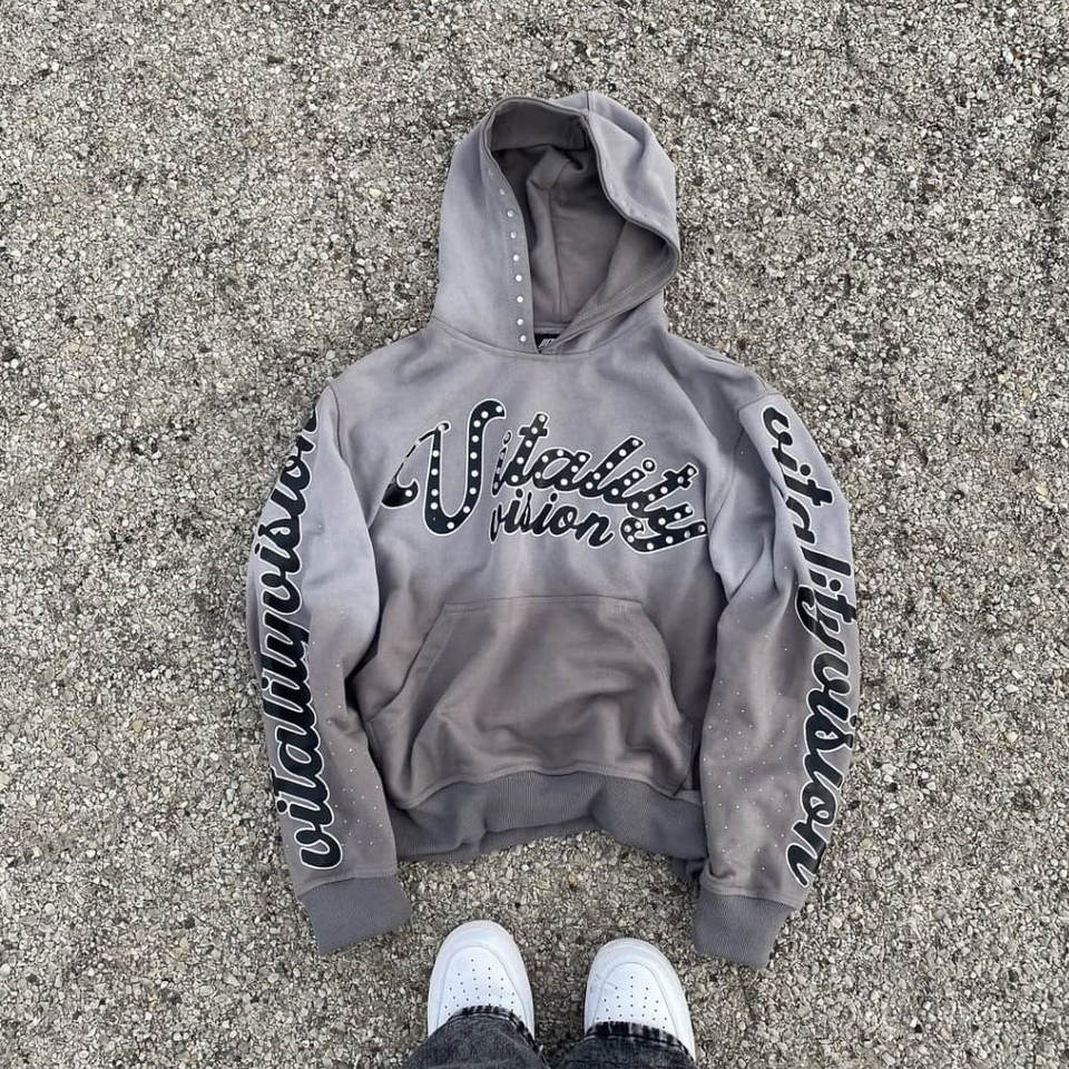 Sudadera con Capucha para Hombre, Personalizada, de Alta Calidad, 100% Algodón, Forro Polar Grueso para Invierno, Corte Regular, Diseño Estampado Digital con Pedrería