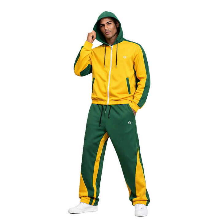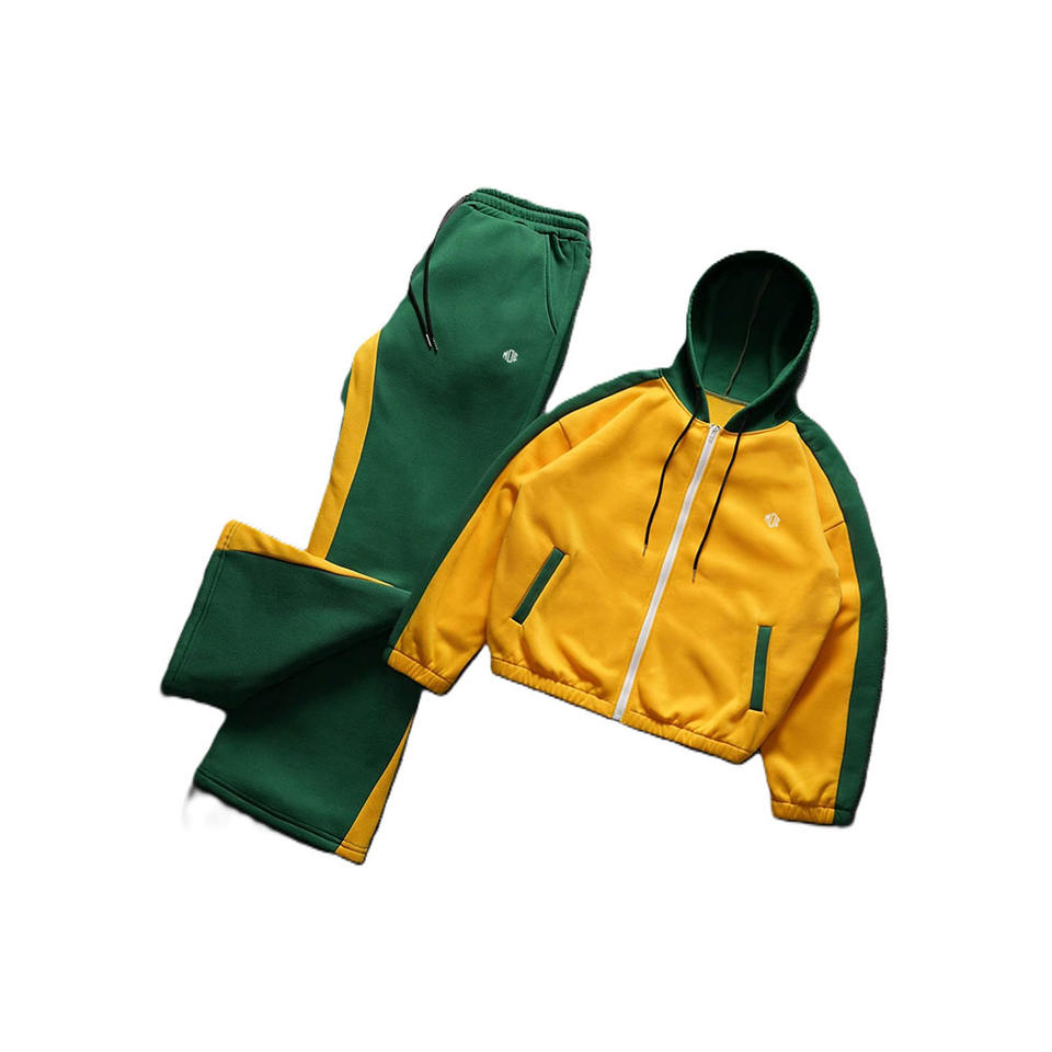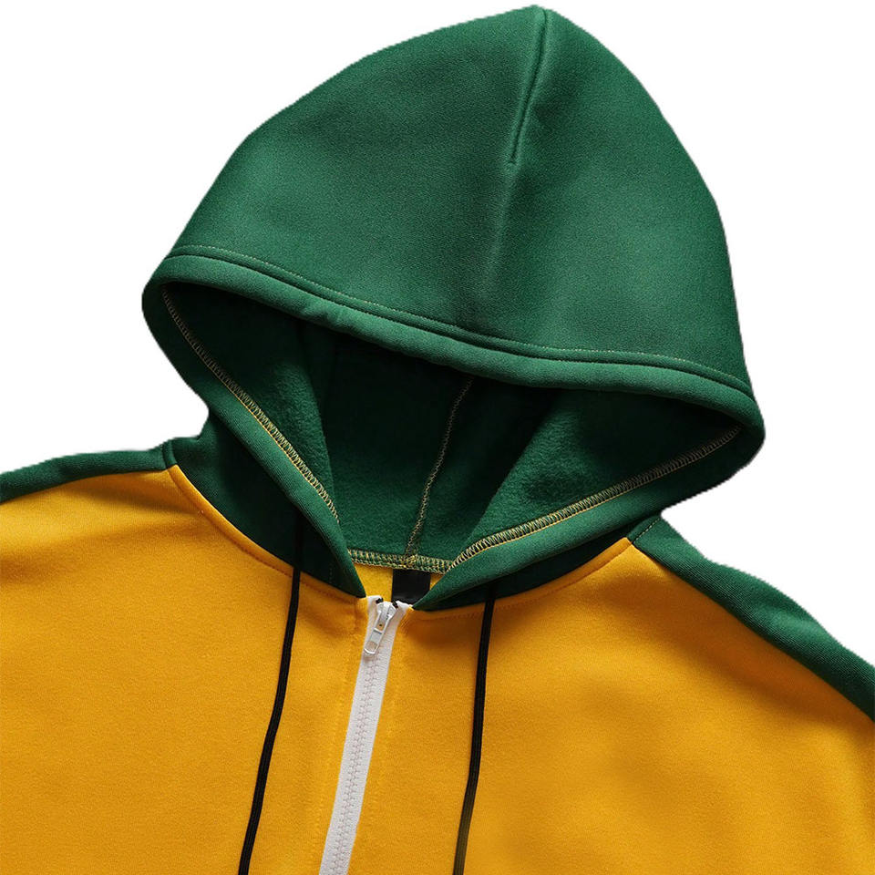 Sudaderas con capucha de bloque de color para hombre, personalizadas, con cremallera completa, proveedor OEM, conjuntos de jogger de alta calidad, fabricación a granel, ropa deportiva ODM, tela suave