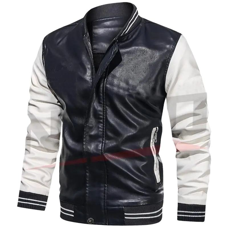 Hombres color bloqueo PU chaqueta de cuero versión casual Stand Up collar chaquetas hombres venta al por mayor distribución motocicleta chaqueta hombres rojo