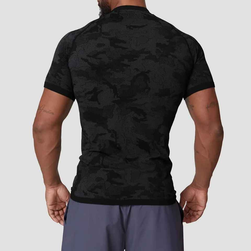 Camiseta Deportiva de Compresión para Hombre, Manga Corta, Cuello Redondo, Transpirable, de Nailon y Poliéster, para Entrenamiento