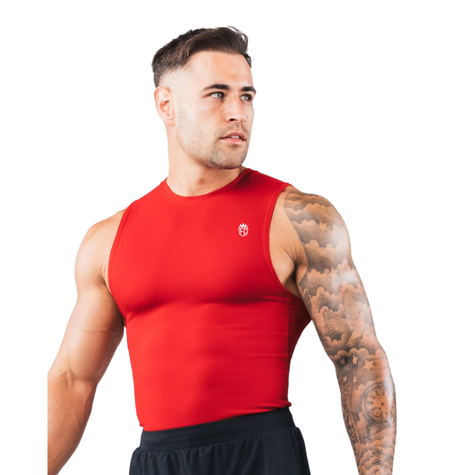 Camiseta de Compresión sin Mangas para Hombre, Ajustada, para Gimnasio, Entrenamiento, Deporte, Color Carmín