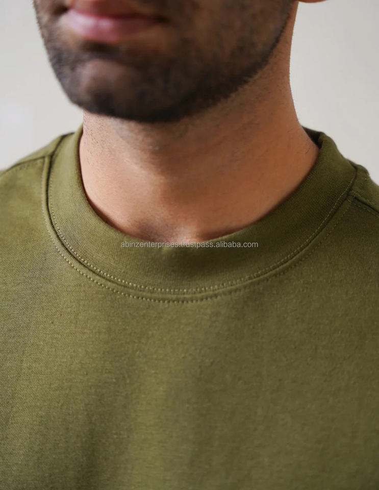 Camiseta de Hombre con Cuello Redondo, Hombros Caídos, Oversize, 100% Algodón, Ajuste Holgado y Cómodo, Cuello Acanalado, Color Liso, Ecológica