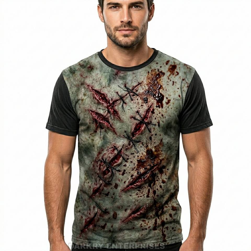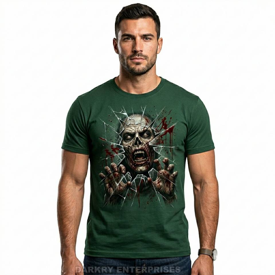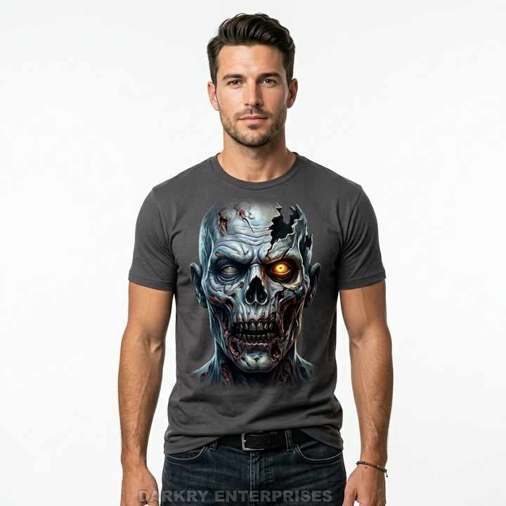 Camiseta con estampado de alta definición personalizada para hombre, camiseta con gráfico de retrato de zombi realista, camiseta de algodón gris carbón, ropa de calle para hombre
