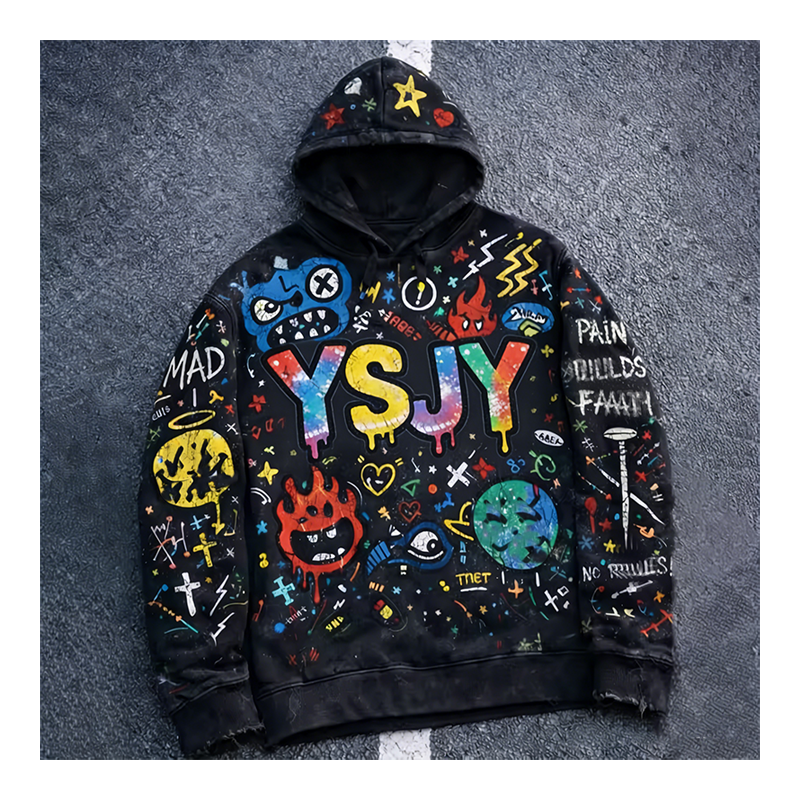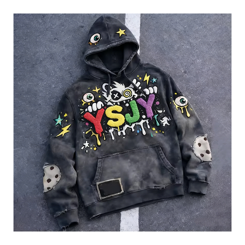 Sudadera con Capucha para Hombre, con Logotipo Personalizado, Estilo Desgastado, Bordado, Efecto Descolorido por el Sol, Estampado Vintage, Sudadera Extra Grande, Lavado Ácido, de Algodón