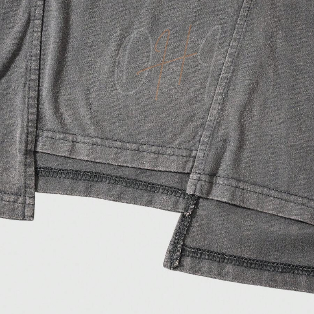 Camiseta Asimétrica Extra Grande para Hombre, Estilo Vintage Lavado, Color Gris, Estilo Urbano, Algodón, Hip Hop, Casual, Ecológica