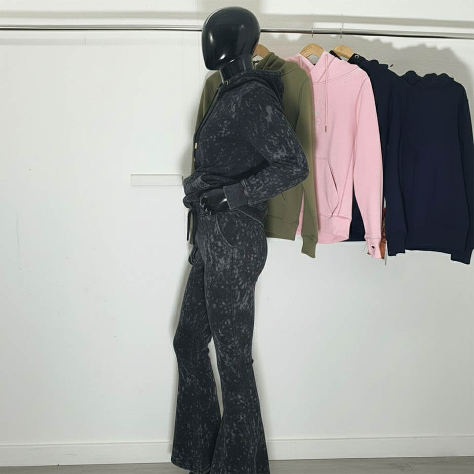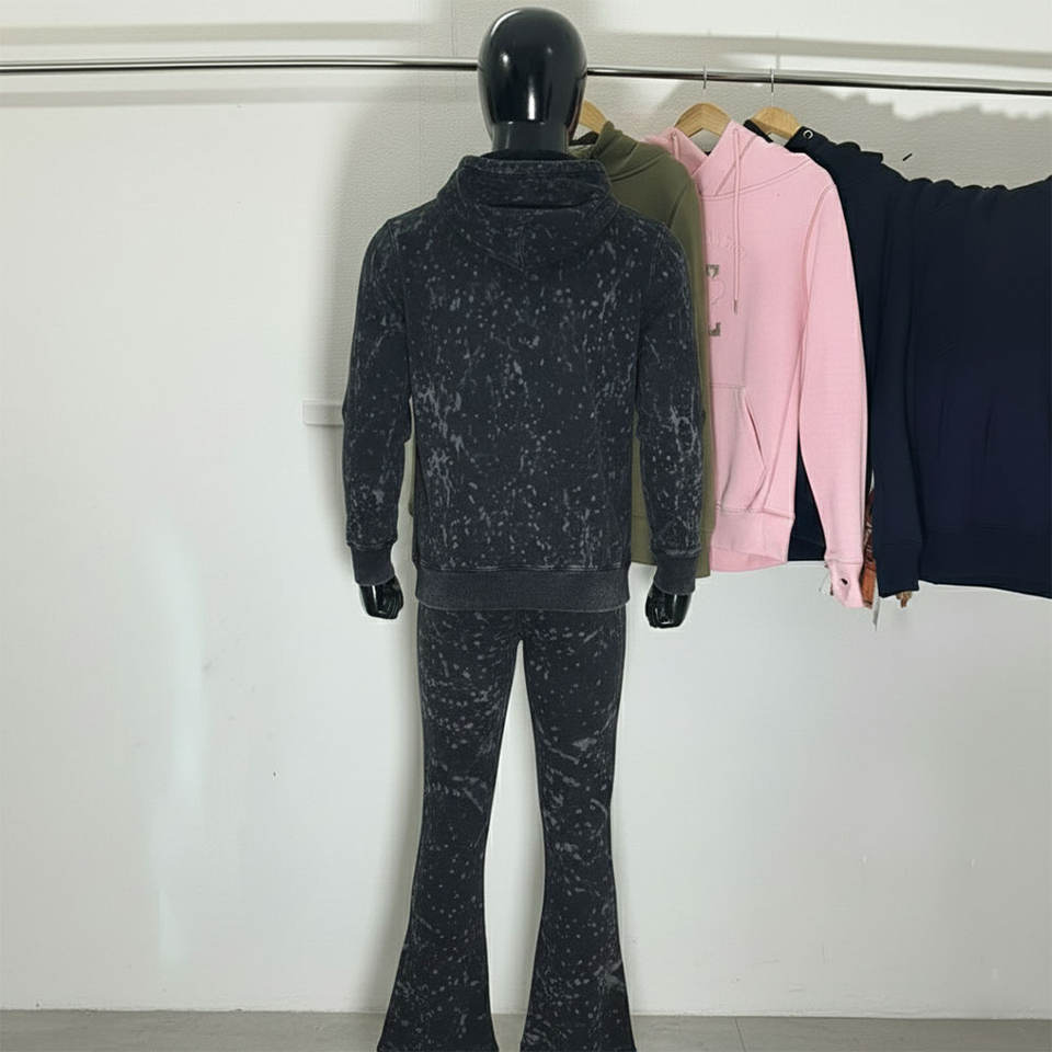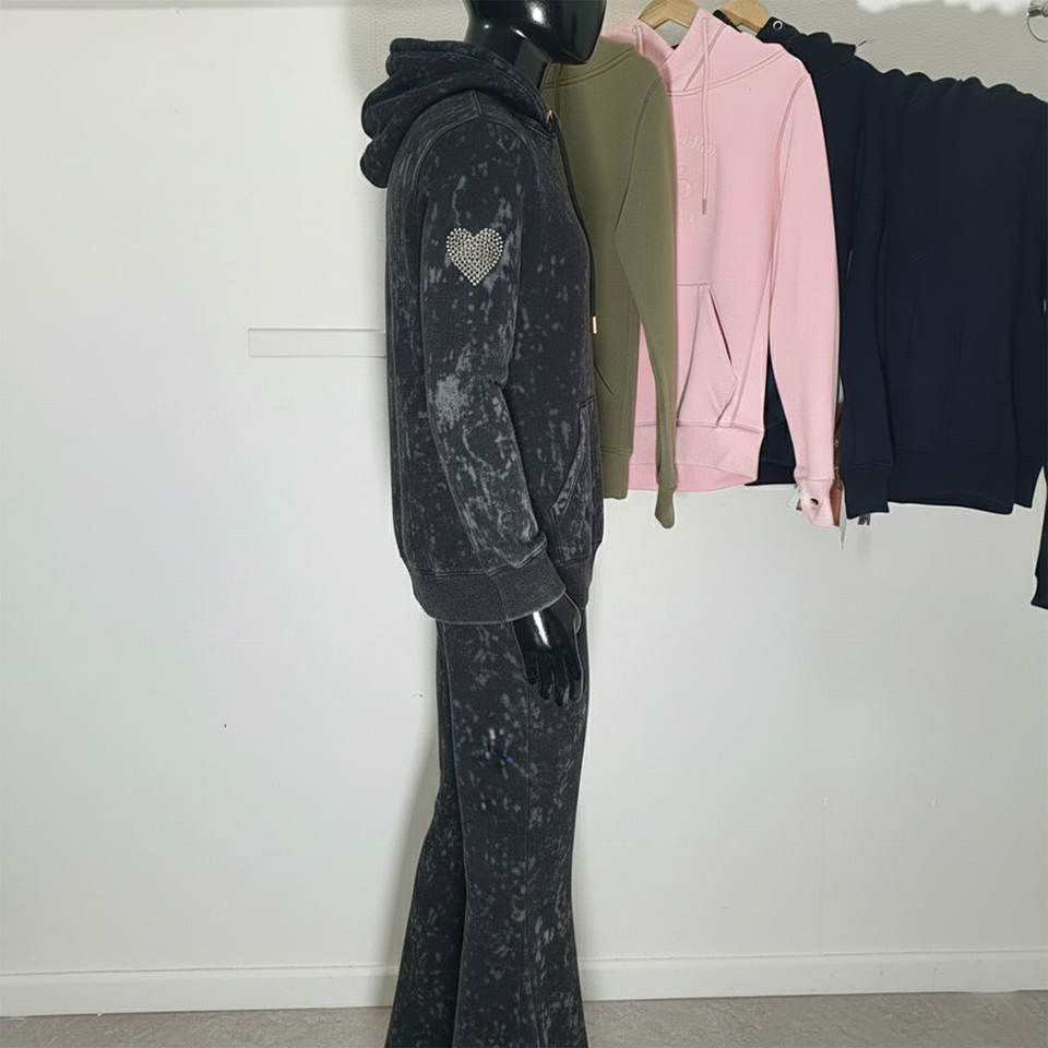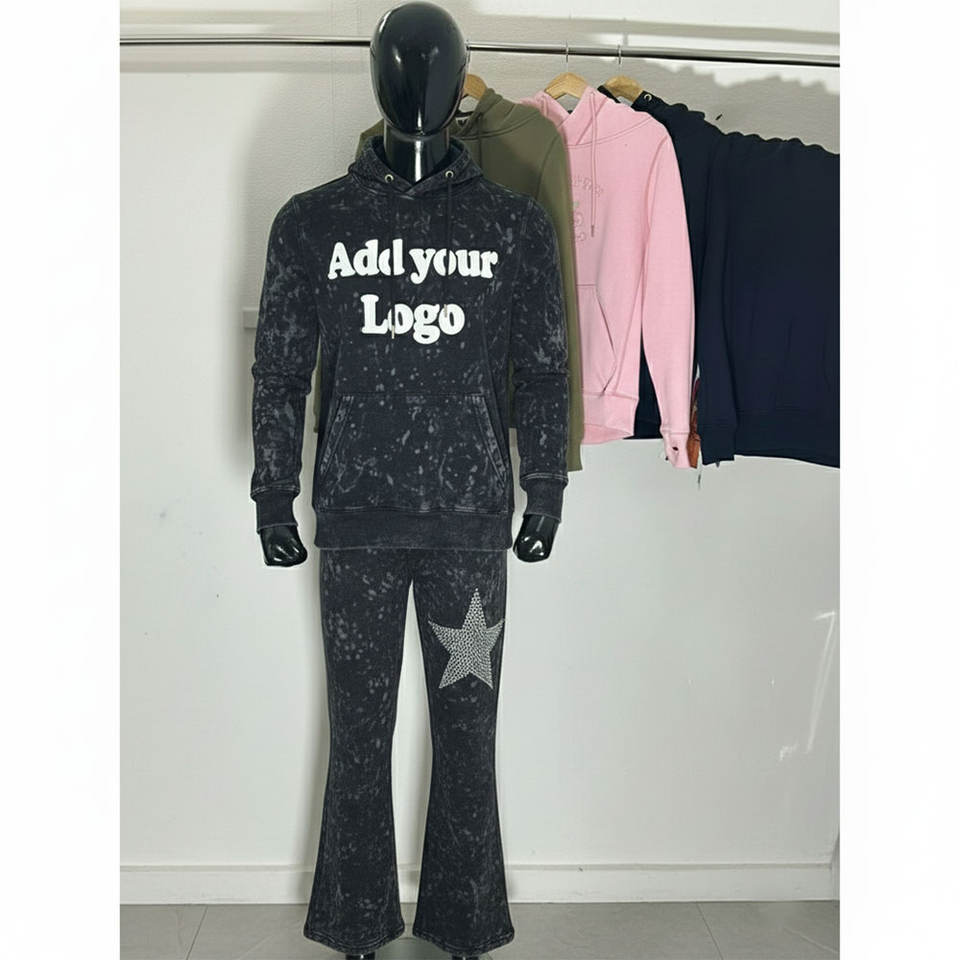 Conjuntos de Sudadera con Capucha y Pantalones Deportivos Anchos con Estampado Serigrafiado, Bordado con Apliques de Pedrería Personalizados para Hombre