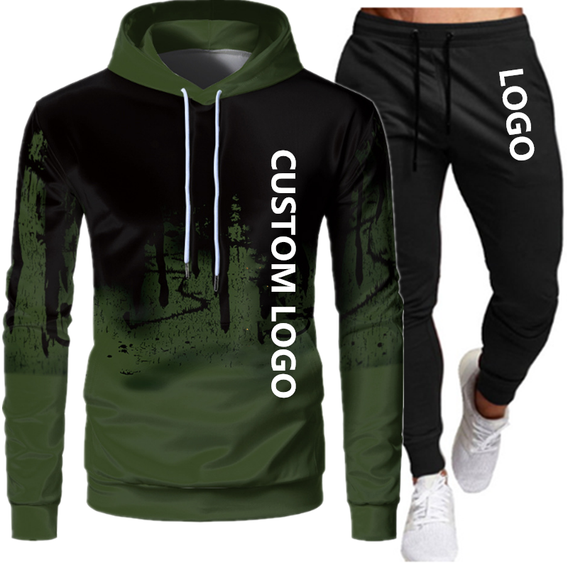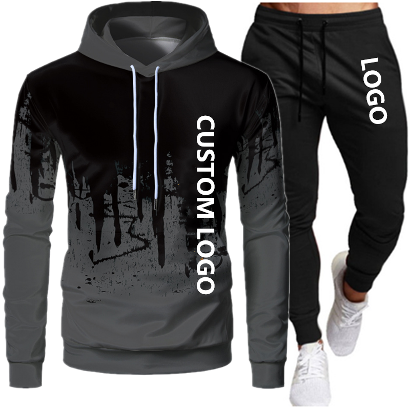 Chándal personalizado con estampado de sublimación para hombre, ropa con capucha de manga larga con banda para la cintura con cordón, conjunto para correr con logotipo personalizado