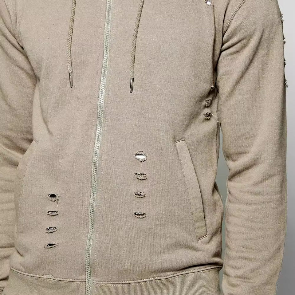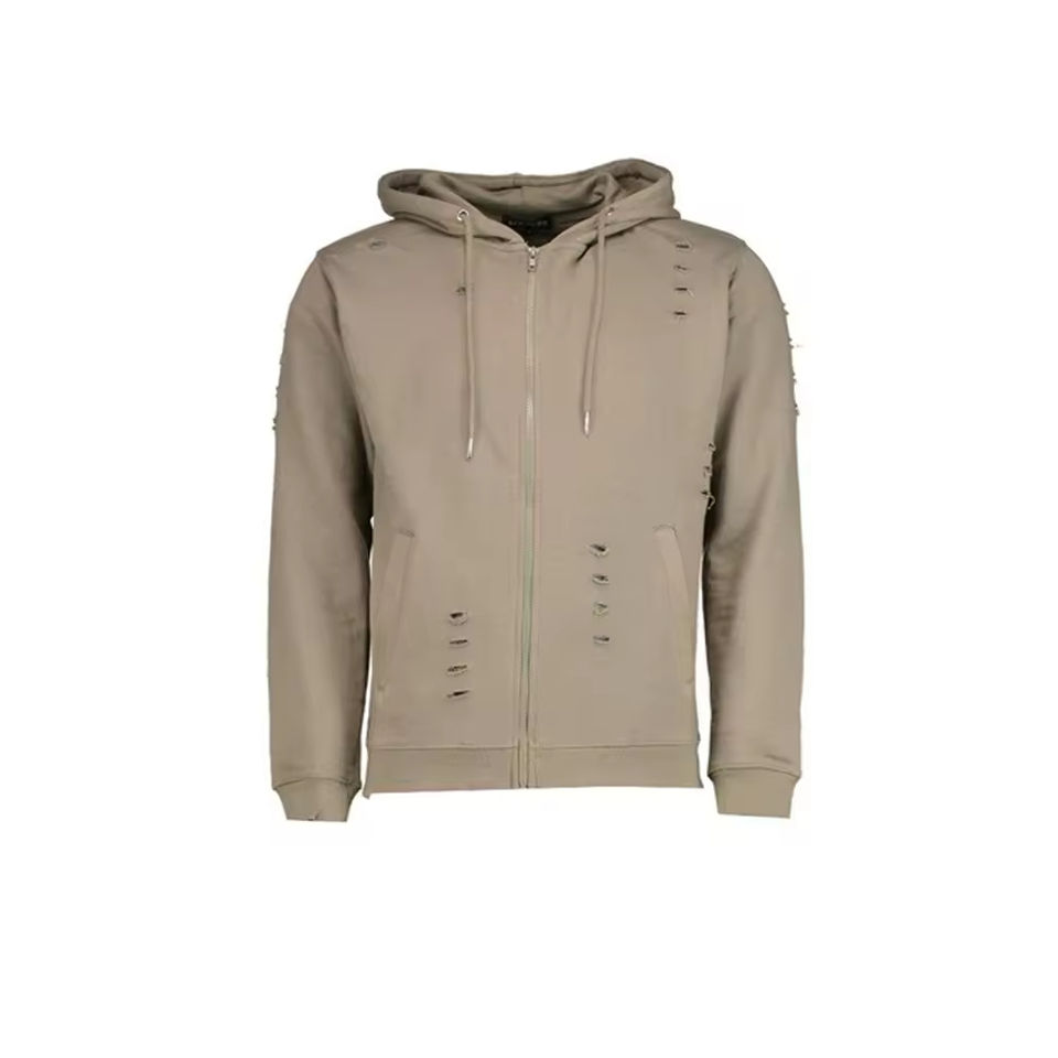 Chándales Personalizados para Hombre con Cremallera Desgastada, Estilo Urbano, Holgados, con Hombros Caídos, Tela Gruesa de 540 g/m²