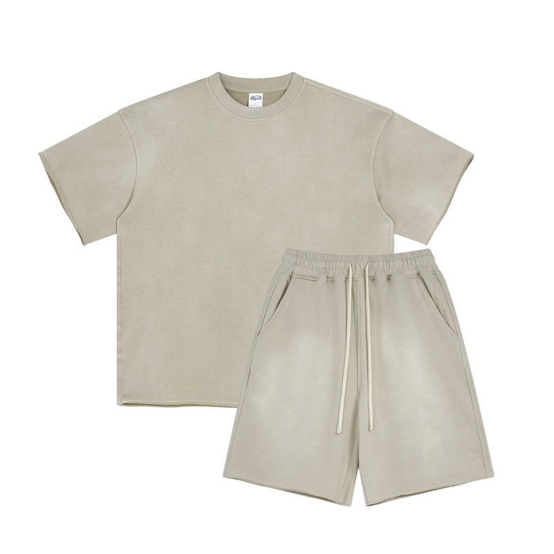 Conjunto de Camiseta y Pantalones Cortos Extra Grandes para Hombre, con Logotipo Personalizado, Bordado de Alta Calidad, Estilo Deportivo, Lavado Ácido, Verano