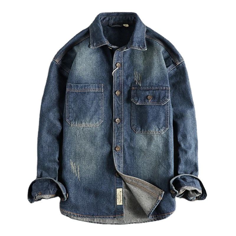 Chaquetas vaqueras para hombre, prendas de vestir exteriores informales de gran tamaño para primavera y otoño, abrigos vaqueros lavados con cuello vuelto y cremallera, ropa de calle Vintage