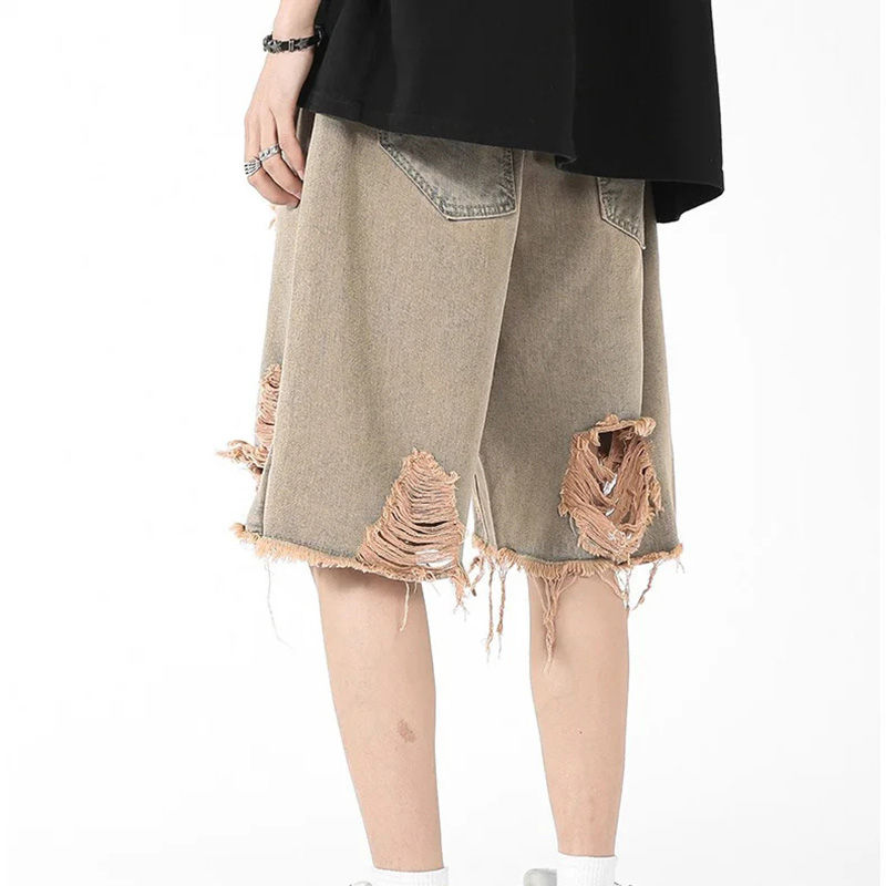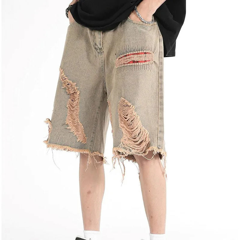 Pantalones cortos desgastados con lavado ácido y cordón para hombre, ropa de calle, pantalones cortos transpirables de algodón de rizo francés para hombre