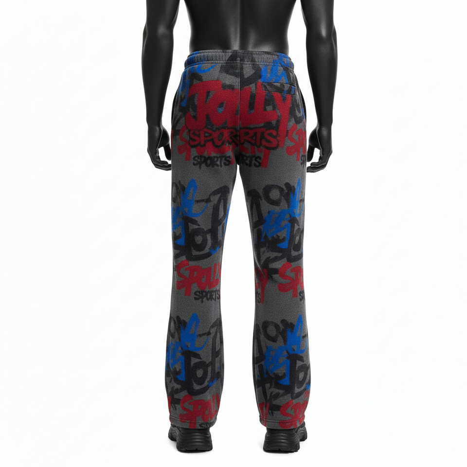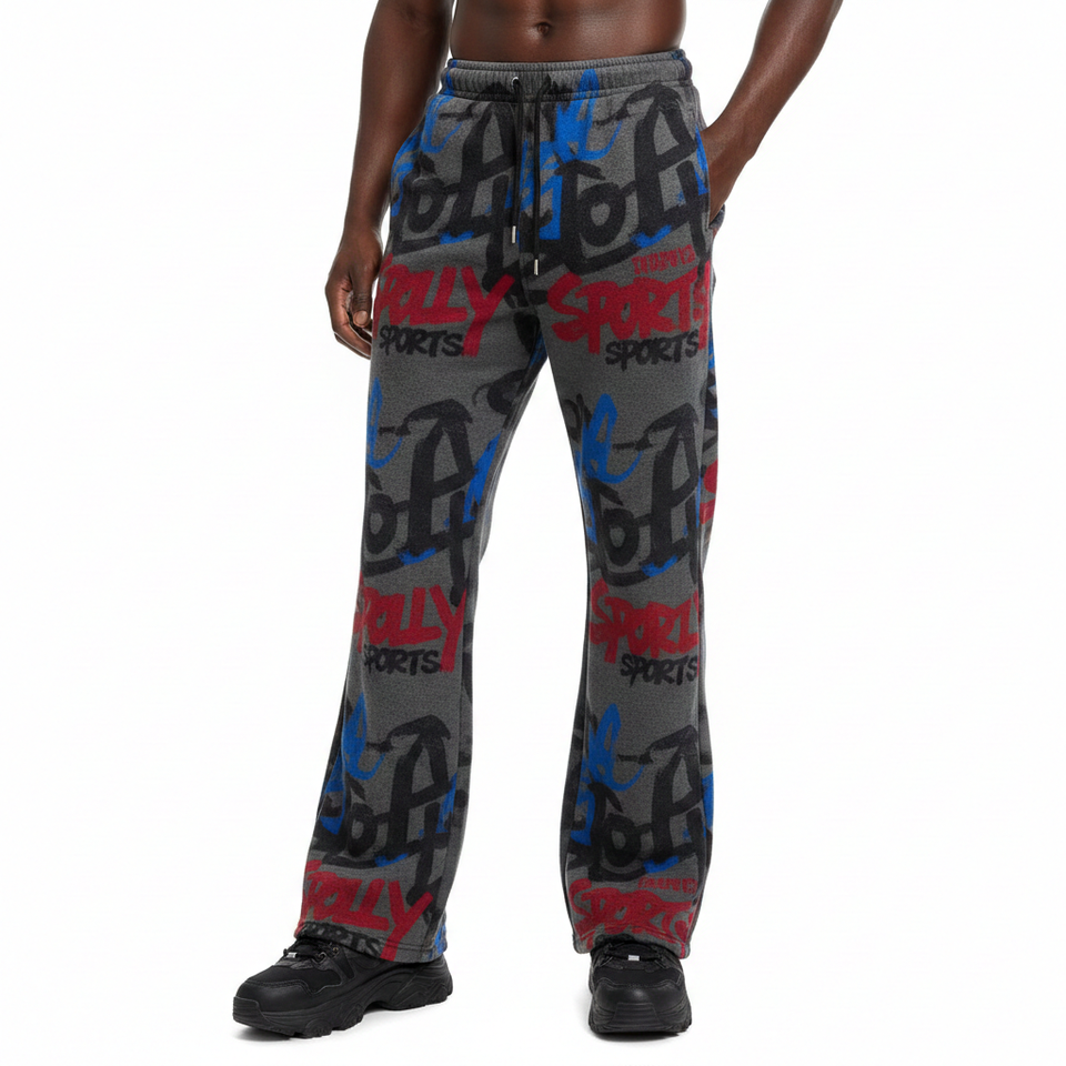 Pantalones de Hombre con Corte Acampanado, Premium, de Poliéster y Algodón, Felpa de 280 GSM, Suaves, en Gris, Rojo y Azul, con Estampado Completo y Logotipo Personalizado