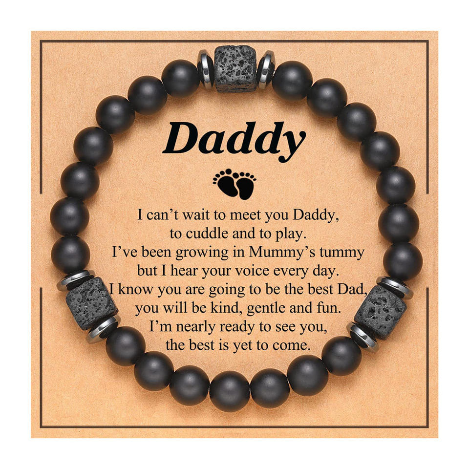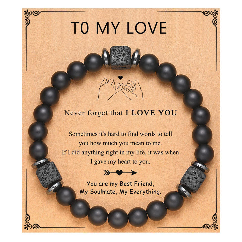 Pulsera de cuentas de piedra volcánica cuadrada esmerilada para hombre, pulsera de tarjeta de regalo para el Día del Padre y la madre para mi familia