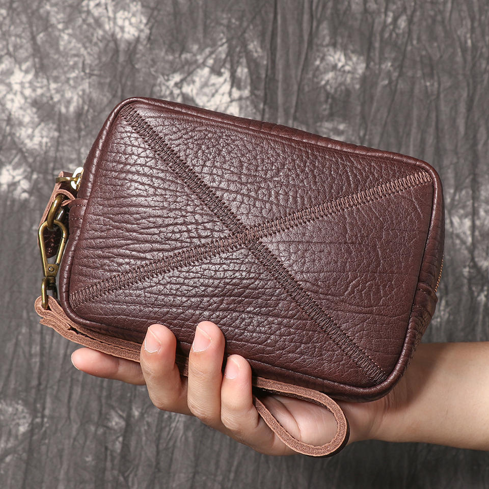 Bolso de pecho de cuero genuino para hombre, bandolera informal de piel de vaca de primera capa para exteriores, mochila pequeña multifunción para hombro