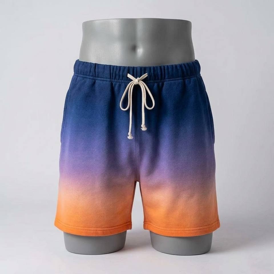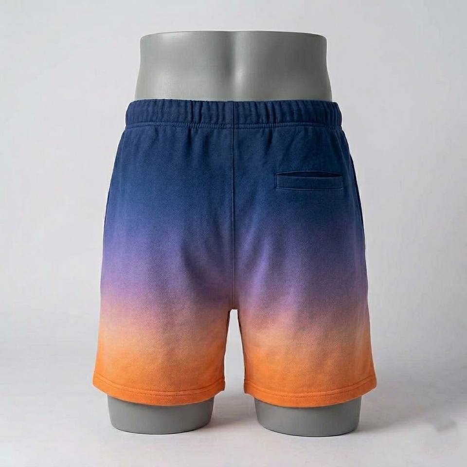 Pantalones cortos de color degradado para hombre, pantalones cortos azules y naranjas con cordón y cintura elástica, pantalones cortos informales de verano para la playa, pantalones cortos deportivos ligeros