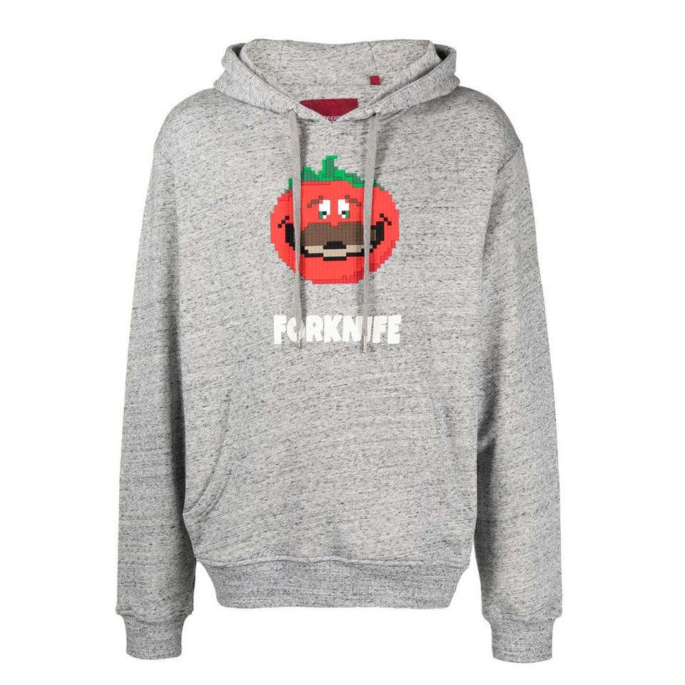 Sudadera con Capucha Gris para Hombre, Diseño de Tomate Pixelado, Informal, de Forro Polar, con Estampado Divertido, Manga Larga, Estilo Urbano, Suave, Cálida y Cómoda