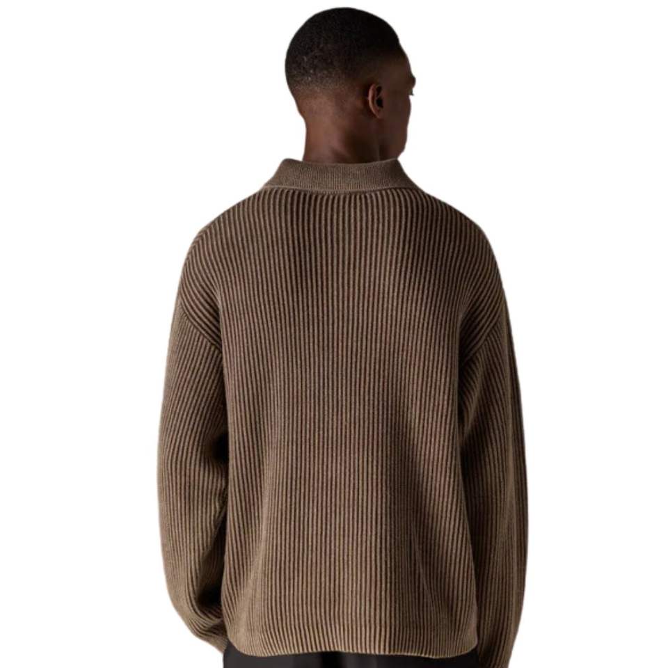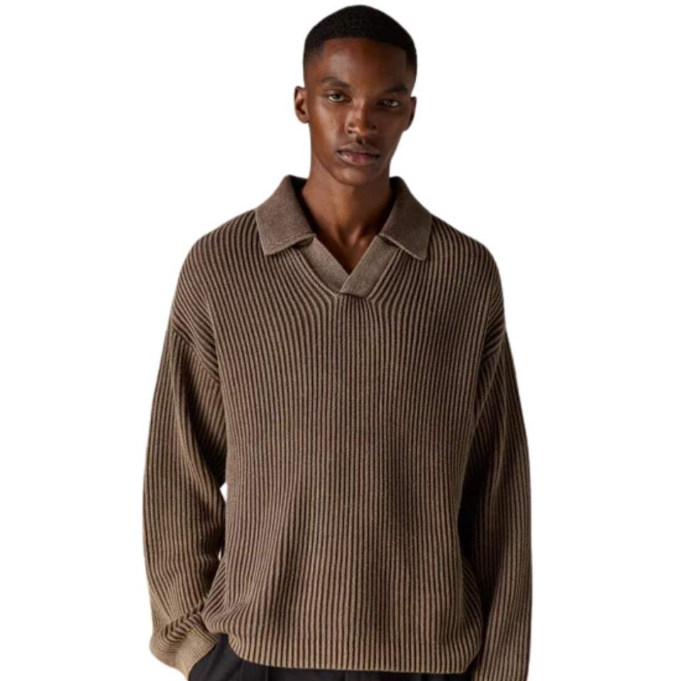 Suéter Polo de Punto Acanalado para Hombre, Lavado, Color Marrón, Manga Larga, Textura Suave, Estilo Casual, para Invierno, Mezcla de Algodón, OEM