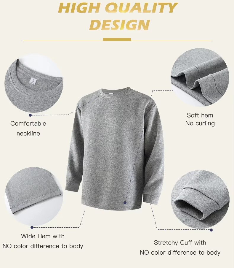 Sudadera de cuello redondo con hombros caídos de gran tamaño para hombre, logotipo impreso personalizado, ropa lisa en blanco