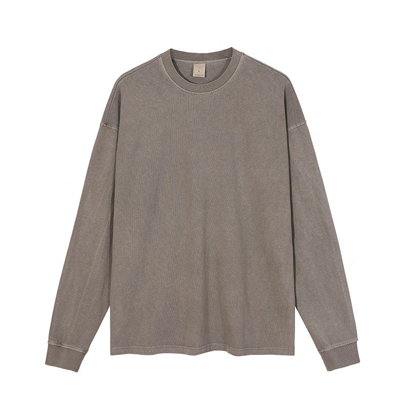 Hombres peso pesado lavado viejo borde molienda inferior camisa desgastada manga larga sudaderas logotipo personalizado ácido lavado sudaderas con capucha