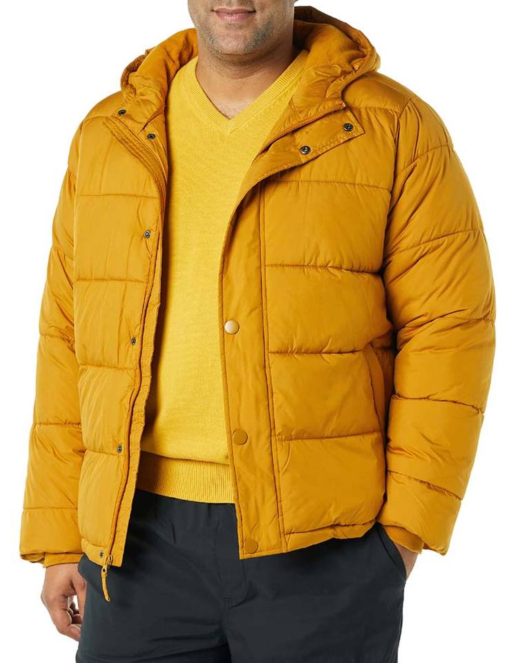 Chaqueta acolchada con capucha para hombre con cordones ajustables Chaqueta clásica de burbuja para hombre con acabado brillante