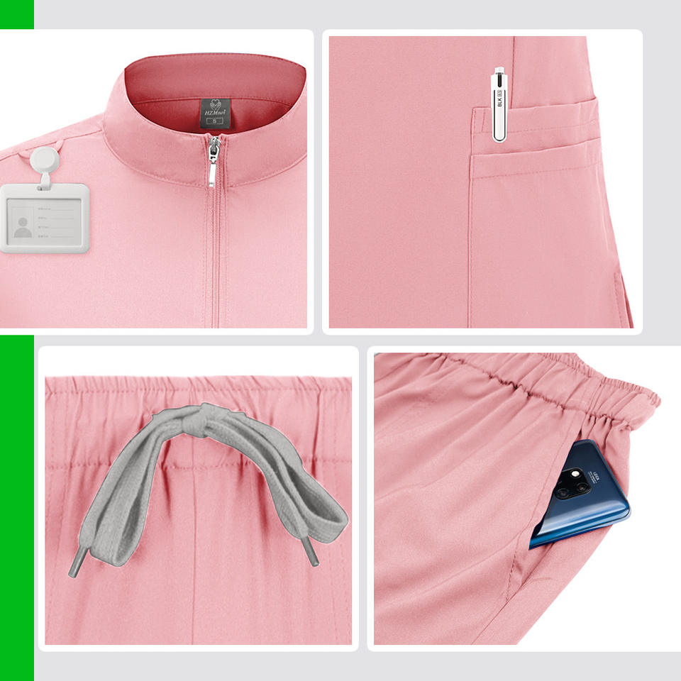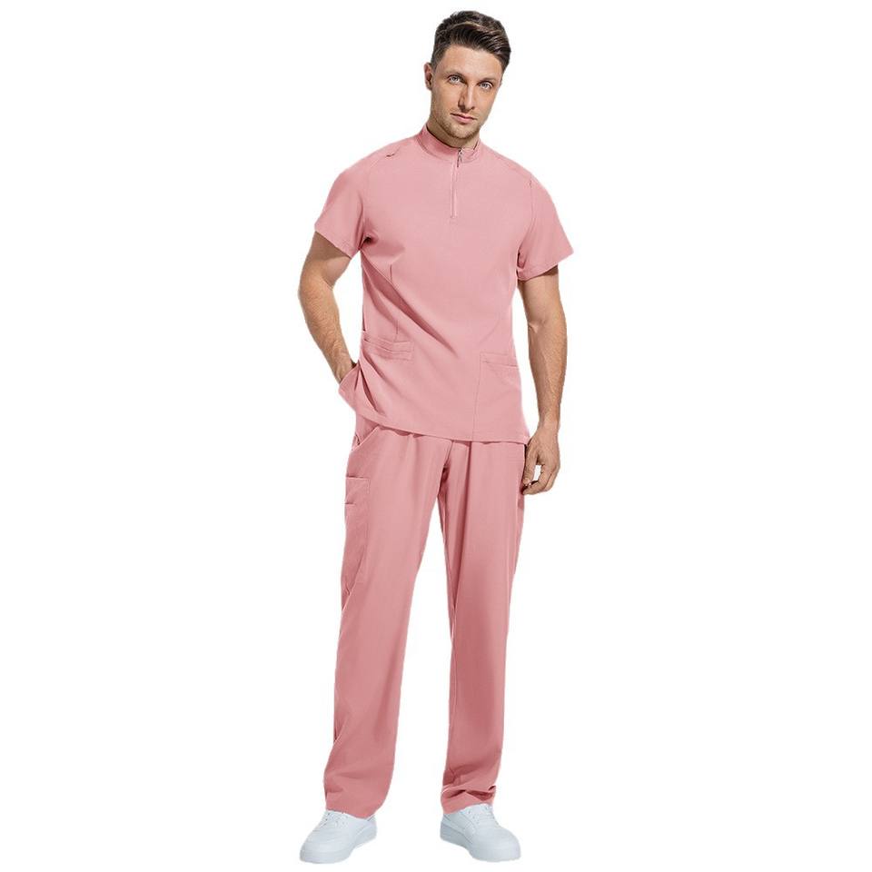 Men Hospital Uniform Set Zip-Up Top Elastic Pants Moisture Wicking Split Design For Medical Workwear