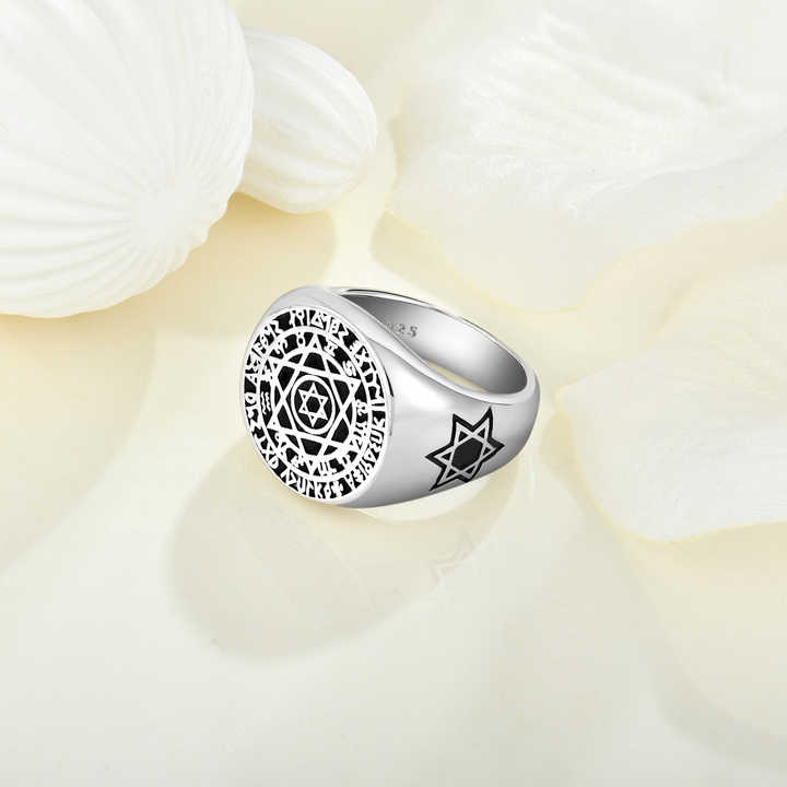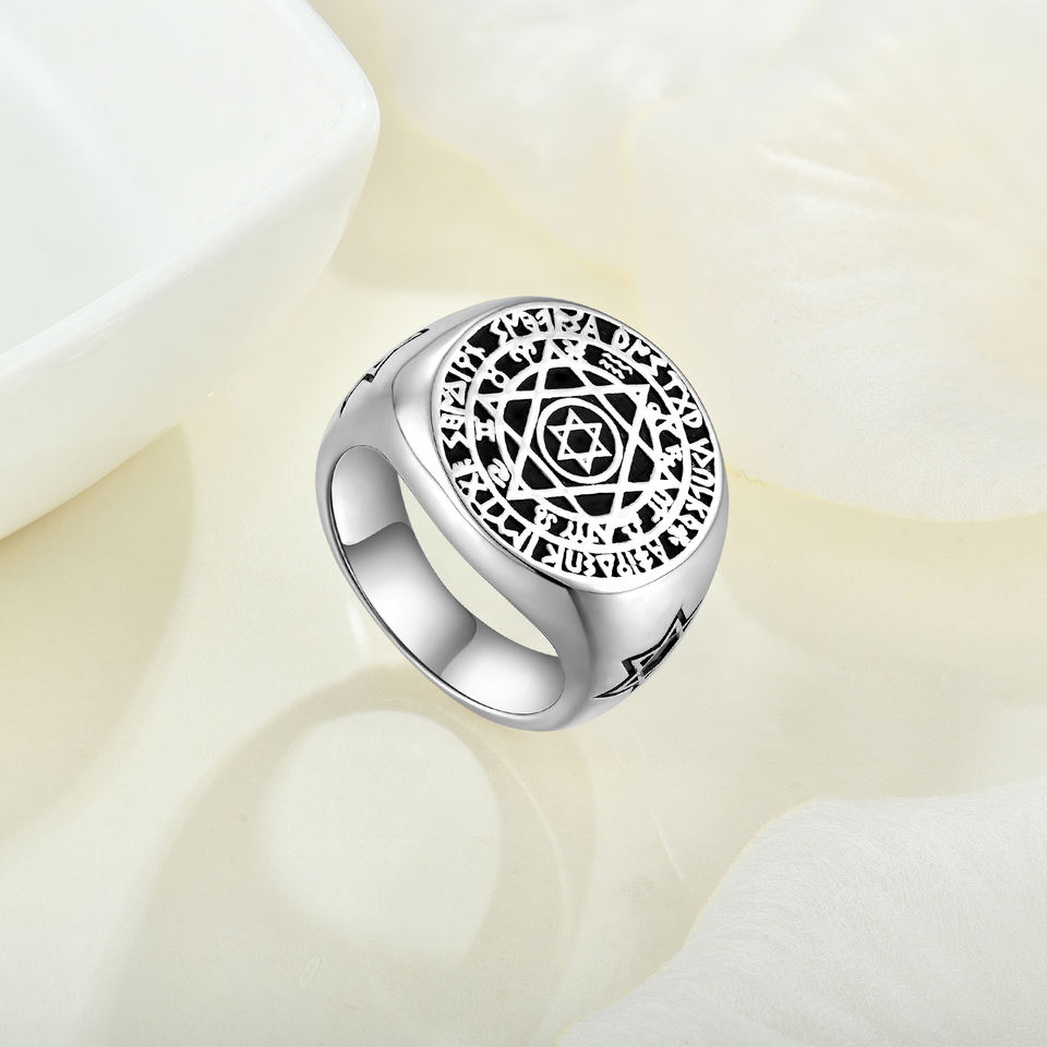 Joyería para hombres, anillos de plata de ley 925, estrella de David, siete arcángeles, Talismán, amuleto de protección, anillo de sello de Salomón para hombres y mujeres