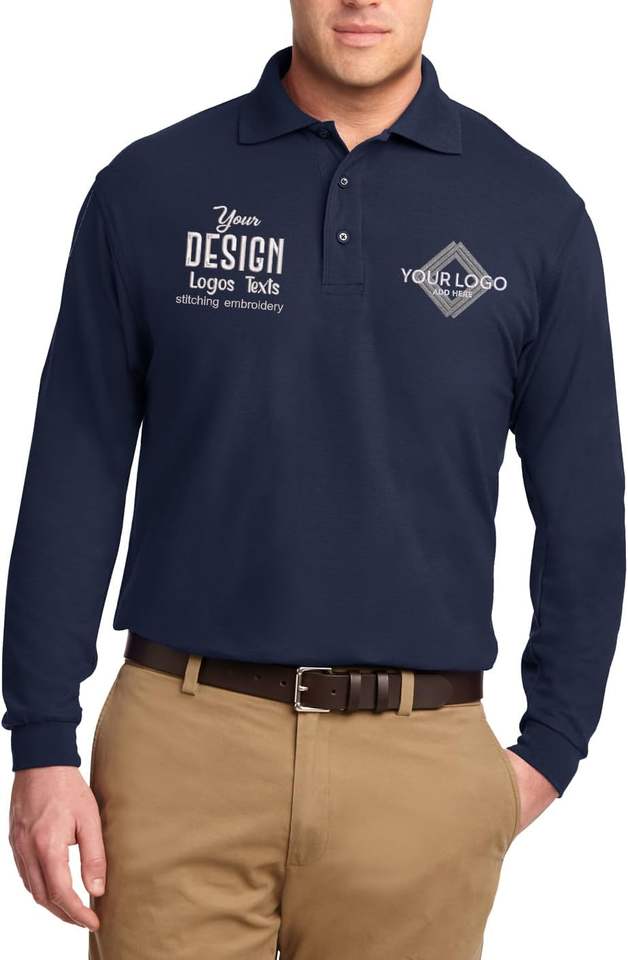 Hombres K500ls personalizado añadir tu logotipo textos bordado seda táctil manga larga polos personalizados bordado costura Polo camisa