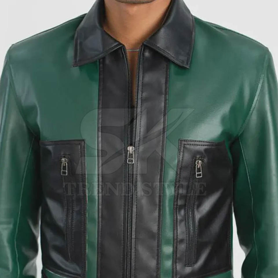 Chaqueta de Cuero para Hombre, Diseño de Dos Tonos, Fabricación Premium, Chaqueta de Cuero Elegante, Chaqueta de Cuero Moderna con Diseño de Dos Tonos