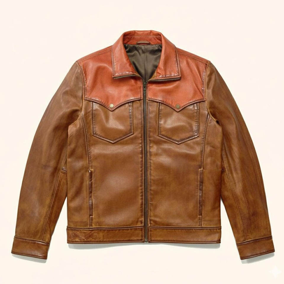 Chaqueta de Cuero para Hombre, Diseño de Dos Tonos, Estilo Premium, Prenda Exterior Moderna