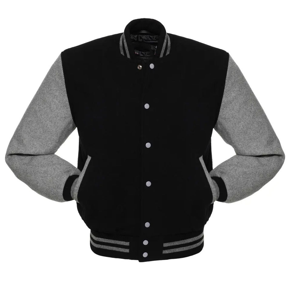 Chaqueta Universitaria para Hombre con Cuello Alto y Detalles de Ribete Acanalado, 100% Lana, Cálida para Invierno, Sensación Suave, Ropa de Calle para Exteriores