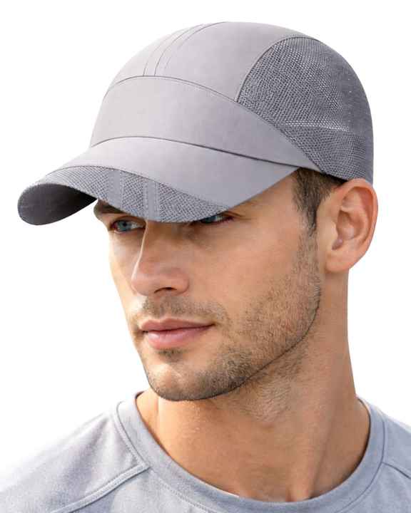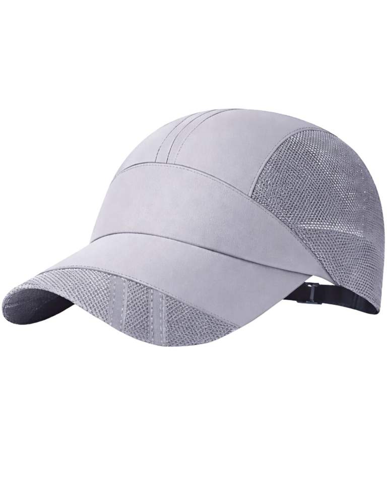Gorra Deportiva para Hombre, Color Gris Claro, con Paneles de Malla, Transpirable, Ligera, Ajustable, para Verano, Running, Entrenamiento, Béisbol