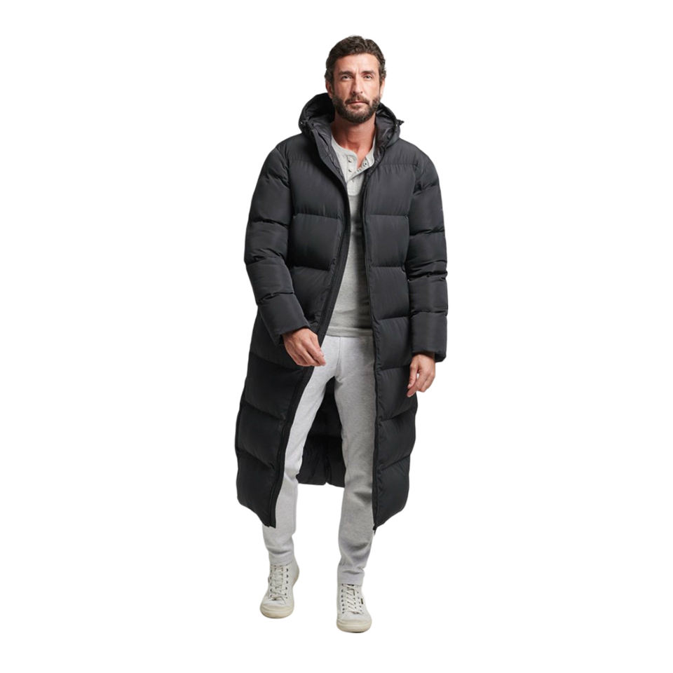 Chaqueta larga de plumón para hombre con capucha, Chaqueta larga acolchada extra gruesa para máxima calidez y comodidad en condiciones climáticas de invierno
