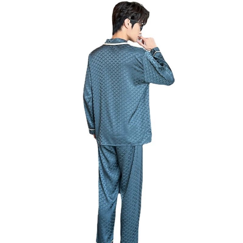 Conjunto de Pijamas largos para hombre, primavera Otoño, manga larga, fina, de seda de hielo, de gama alta, Jacquard, talla grande, se puede usar fuera del hogar, traje de ropa
