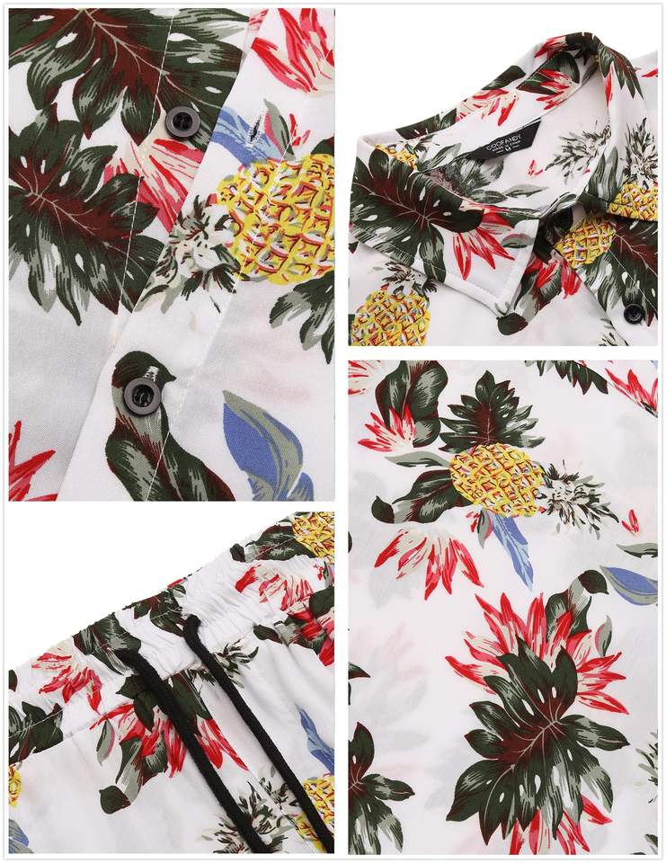 Conjunto a juego para hombre con estampado floral, camisa de manga corta con botones, pantalones cortos de playa, conjunto informal y colorido para vacaciones de verano, camisa y pantalones cortos para hombre