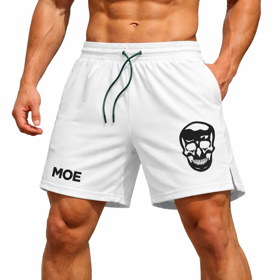 Pantalones Cortos Deportivos de Malla para Hombre, Logotipo Personalizado, Gráfico de Calavera, Cordón Elástico, Entrenamiento de Alto Rendimiento, Directo de Fábrica