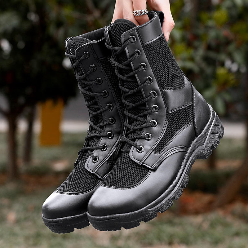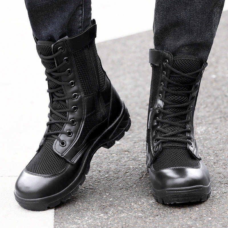Botas de Trabajo de Malla con Cremallera para Hombre, Punta Redonda, Tacón Bajo, Transpirables, Zapatos de Senderismo para Exteriores, Zapatos de Guardia de Seguridad