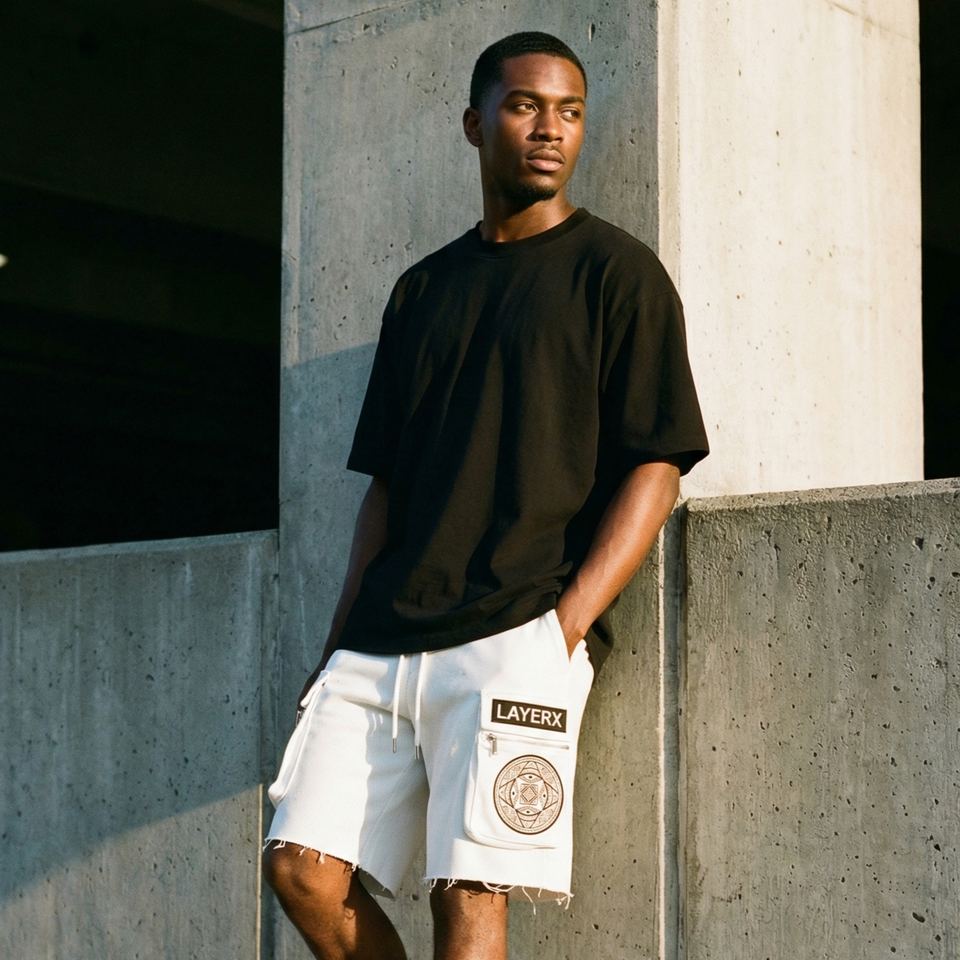 Pantalones Cortos Cargo para Hombre, de Poliéster/Algodón, Color Liso, Bordado Personalizado, Estilo Y2K, Corte Cuadrado, Dobladillo Deshilachado, Estilo Informal para Gimnasio, Ecológicos
