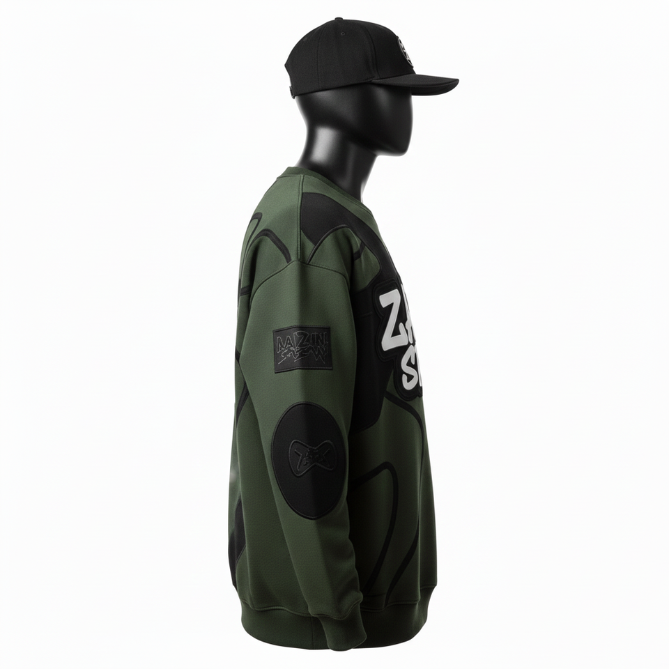 Sudadera Extra Grande para Hombre, Algodón, Poliéster, Felpa, Verde Oliva, Panel Negro, Logotipo Bordado en Chenilla Personalizado, Sudaderas Básicas