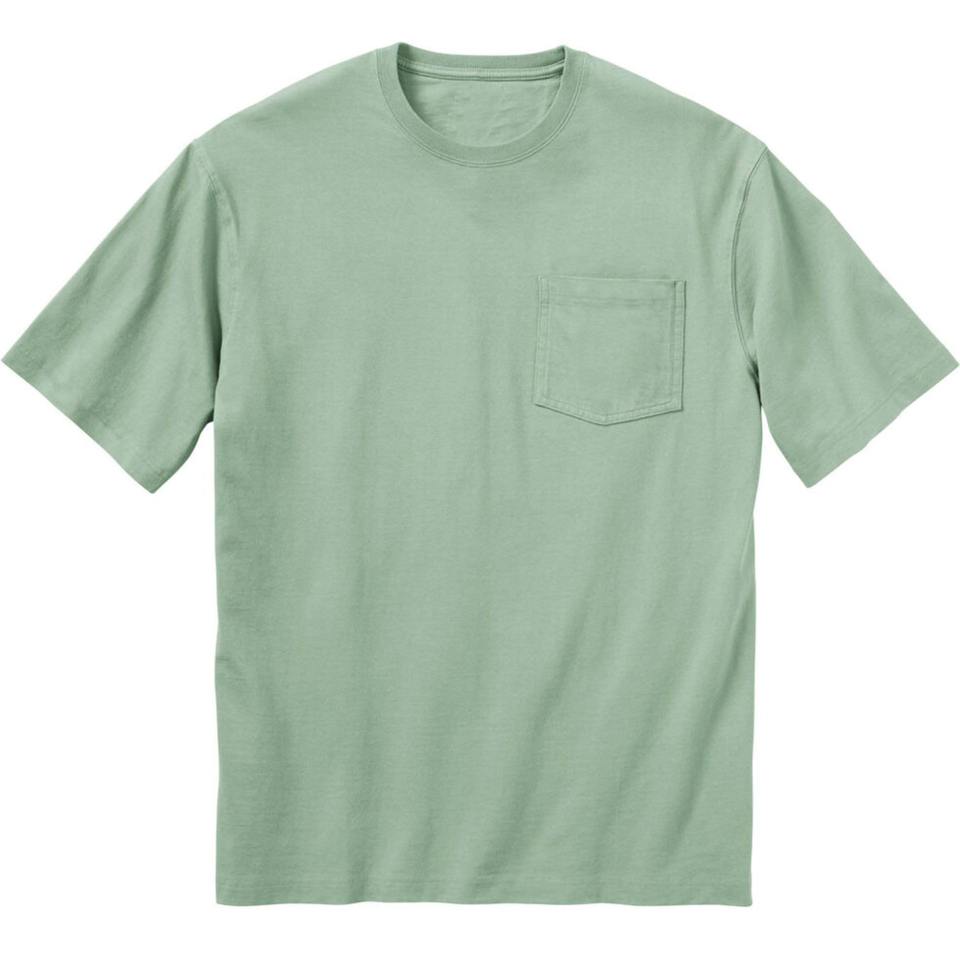 Camiseta de algodón de gran tamaño para hombre, Jersey elegante de cuello redondo pesado con bolsillo, ropa de calle bien ajustada, camiseta para ropa informal
