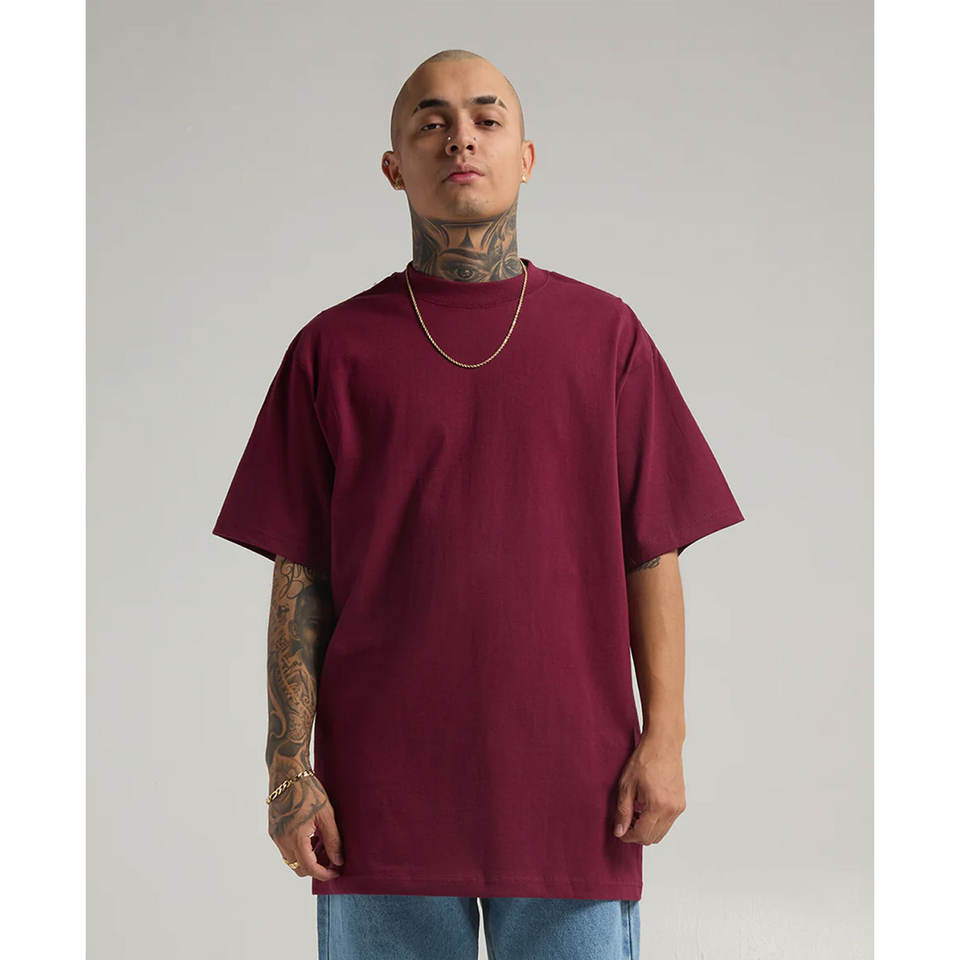 Camiseta extragrande de cuello redondo para hombre Camiseta extragrande de media manga para hombre Camiseta sólida de mezcla de algodón con hombros caídos (color granate)