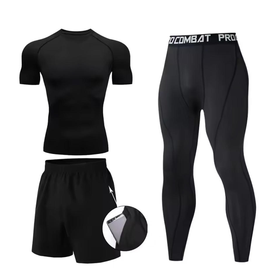 Conjunto de Compresión de Alto Rendimiento para Hombre, 3 Piezas: Camiseta, Mallas y Pantalones Cortos de Gimnasio, Venta al por Mayor de Ropa Deportiva de Alta Calidad