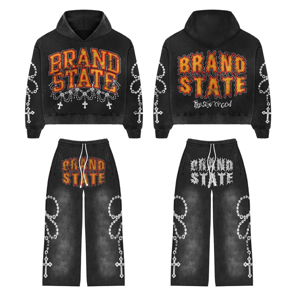 Chándal de Hombre Talla Grande con Hombros Caídos | Conjunto de Algodón Suave con Estampado Serigrafiado | OEM Personalizado al por Mayor