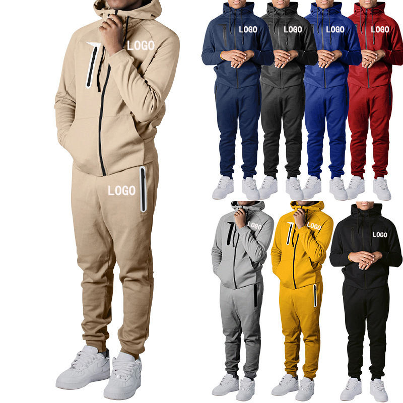 Conjunto Deportivo de Invierno para Hombre, Talla Grande, de Forro Polar Térmico, de Secado Rápido, con Cremallera, 2 Piezas, Sudadera con Capucha y Pantalones Deportivos, Ropa Deportiva Informal, 100% Algodón
