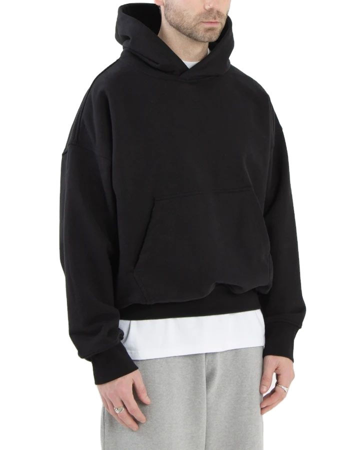 Sudadera con capucha de algodón pesado para hombre, nuevo logotipo personalizado, forro polar recortado negro de gran tamaño, Unisex, en blanco, de alta calidad para invierno
