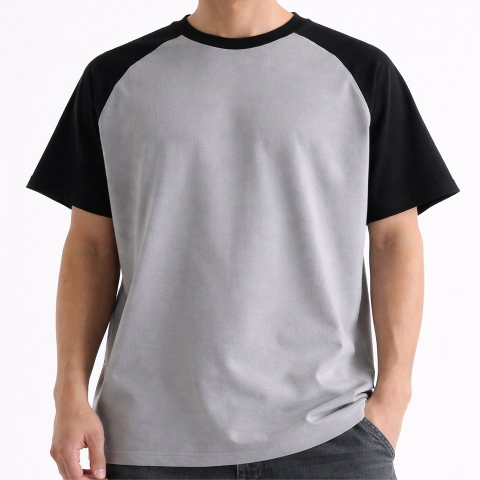Camiseta Deportiva de Manga Corta para Hombre, Estilo Raglán, Cuello Redondo, Algodón, Diseño Bicolor, Premium, Cómoda y Transpirable