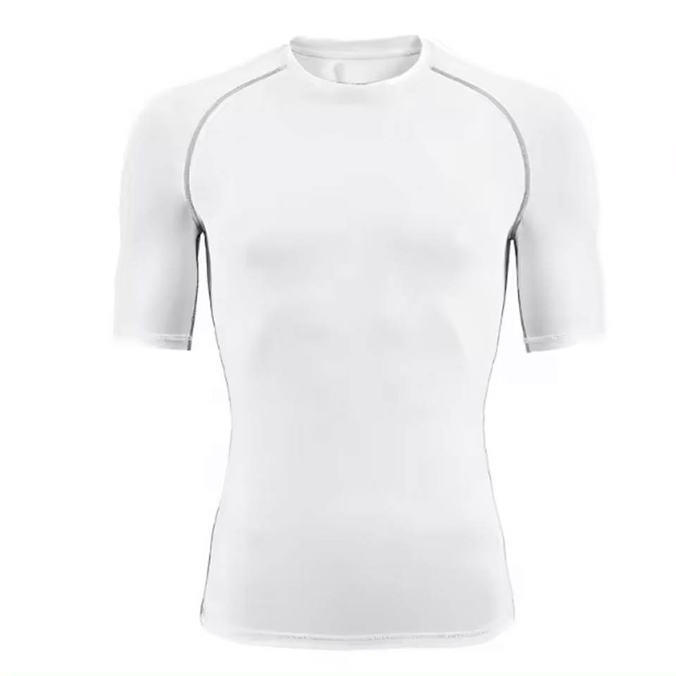 Camiseta deportiva de nailon con logotipo personalizado de spandex para hombre, ropa de gimnasio, camisetas de protección contra erupciones cutáneas para hombre, ropa de artes marciales, traje de baño.