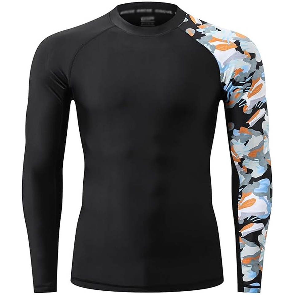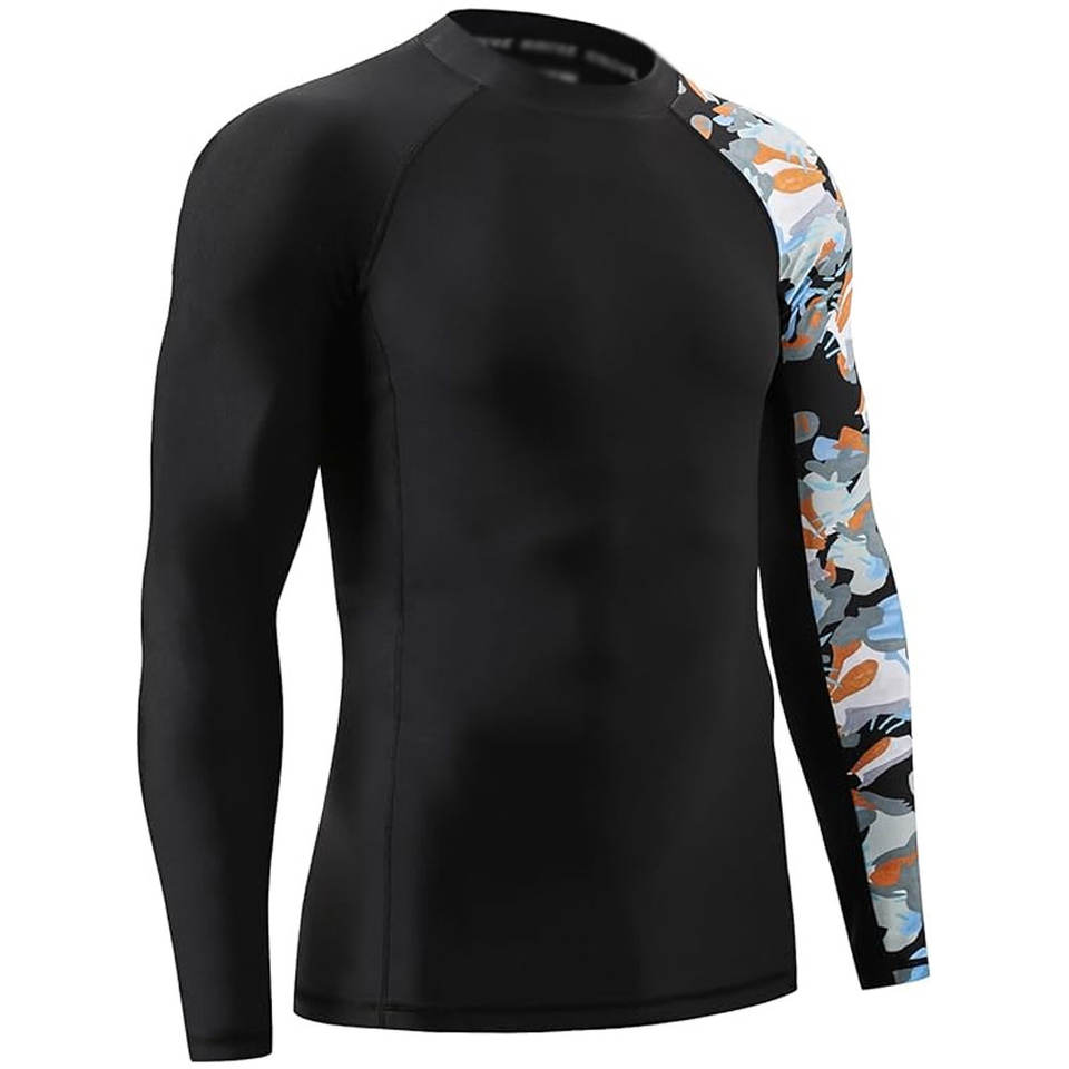Hombres Rash Guard Fitness Wear Manga completa Secado rápido Deporte Top Ideal para surfear Natación Entrenamiento y entrenamiento de gimnasia