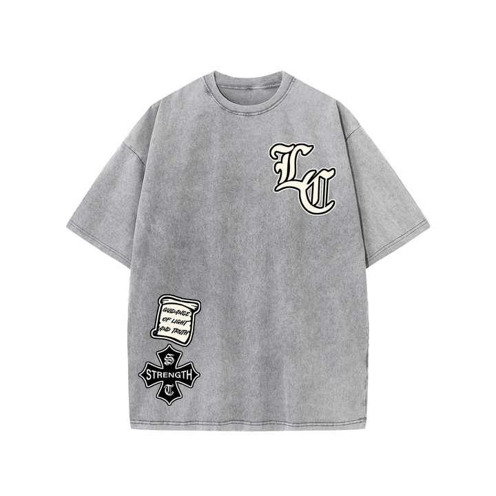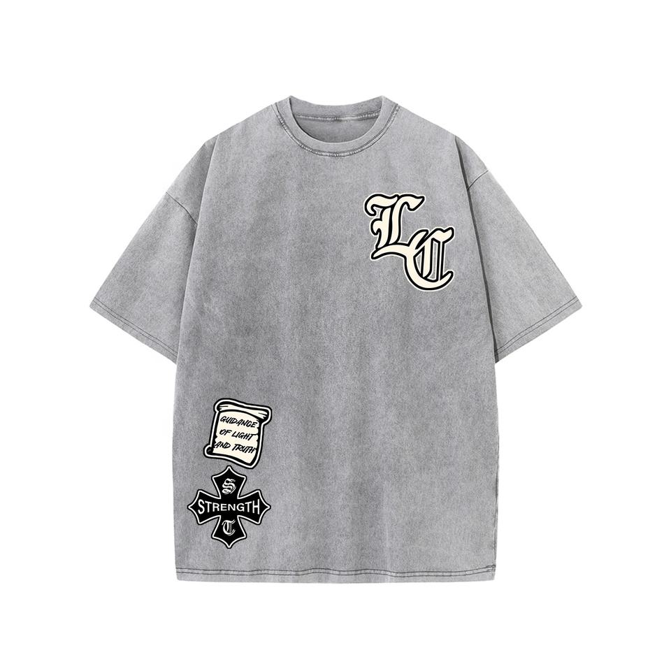 Camisetas de Punto para Hombre, Retro, Estampadas, Lavadas al Ácido, 100% Algodón, Estilo Urbano, Hip Hop, Manga Corta, Corte Holgado, Antiarrugas, Secado Rápido